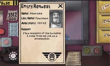 身为大楼看门人,玩家的角色从平凡的看门人摇身一变,成了守护租户的英雄。玩家必须挫败那些冒名顶替者试图进入大楼的阴谋。玩家能够借助查看用户个人资料、查验身份证、核实公寓号码,乃至拨打验证电话等方式,来判断进入建筑物的究竟是人类,还是危险生物。