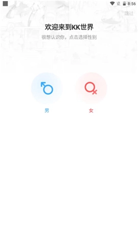 3、请依据自身实际状况挑选性别,若不想此时选择,也可点击右上角的跳过按钮。