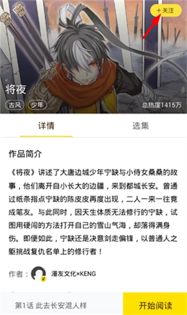 2、因为快看漫画无法直接缓存漫画,所以你得先关注想要缓存的那部漫画。