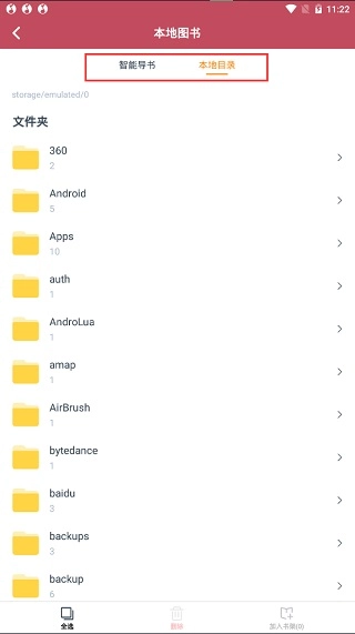2. 轻点书架板块,寻得右上角的菜单,而后点击本地导入。