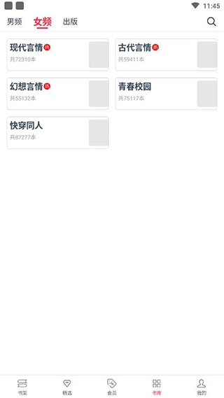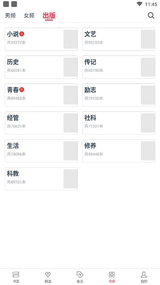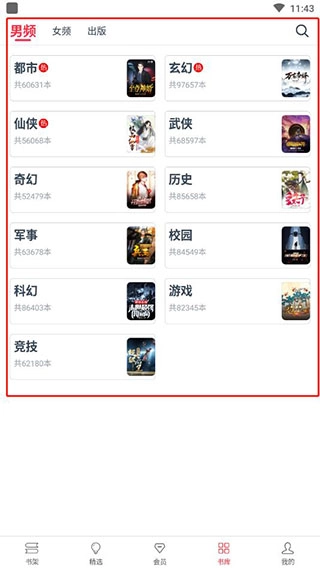 3、于书库之中,能够寻觅到各类小说,同时还会有男频、女频、出版方面的不同介绍。其中,男频涵盖都市、玄幻、仙侠、武侠等多种类型。