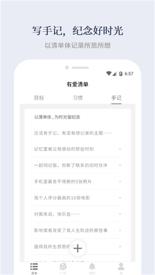 5、【书写手记,纪念美好时光】采用清单体的形式记录自己的所思所想。