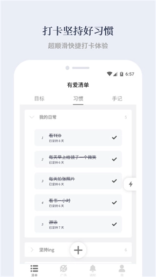 3、【打卡养成好习惯】带来超顺滑且快捷的打卡感受。