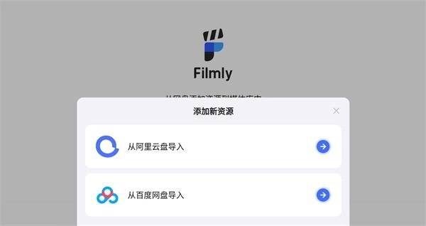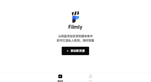 2、当你进入filmly软件的主页时,会发现页面空空如也。在这种情况下,就需要我们添加新的资源信息,该软件支持导入夸克网盘、百度网盘等各大主流网盘的资源。