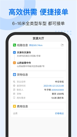 4、电话功能,能即刻提高你与货主的沟通效率,无需切换应用,既直接又便捷。