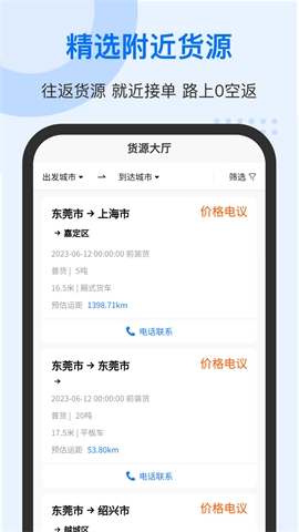 1当发现心仪的货源时,只需轻松一键拨打电话,就能直接与货主取得联系,既节省时间,又免去翻找的麻烦。