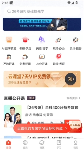 网易云课堂堪称一款不容错过的终身学习神器,它专为成年学习者量身打造。该应用所涉内容极为全面,从考研升学、英语留学,到工作技能提升、职业资格考证,乃至各类生活类课程,应有尽有。无论你在生活、工作或是学习过程中遭遇何种难题,它都能提供一站式解决方案。不仅如此,平台上云集了众多优秀教师,为你呈上最顶尖的课程内容,无疑是助力学习的得力助手。