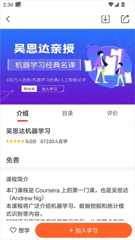 2、接着点击底部的“加入学习”按钮,使自己能更深入地接触这门课程。