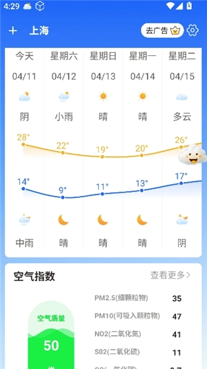 天天看天气该如何使用呢? 1、在本页面进行天天看天气的操作,安装完成后直接打开应用,选择好城市后即可进入首页。