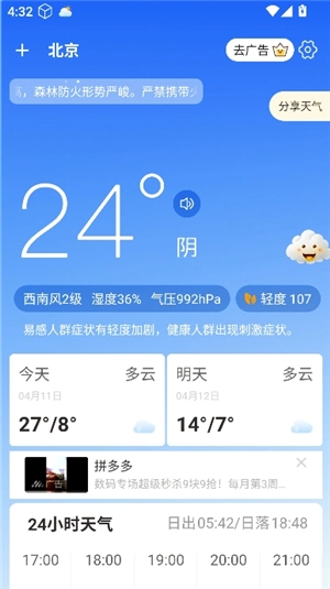 3、可精准定位您的位置,并依据该位置为您提供当地天气预报。