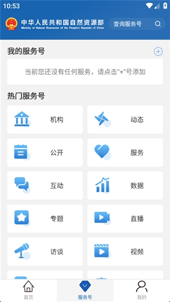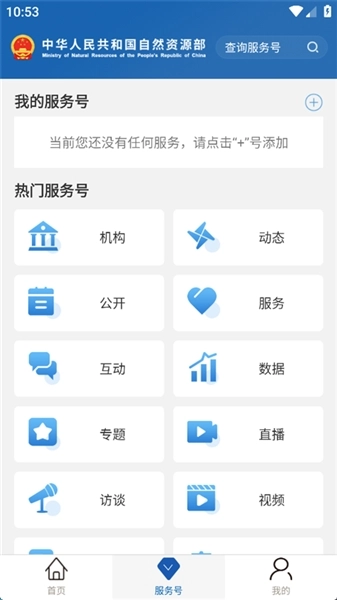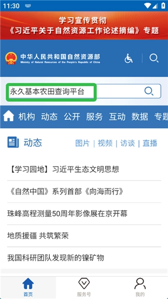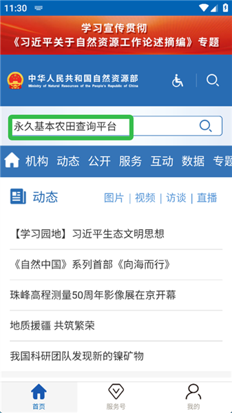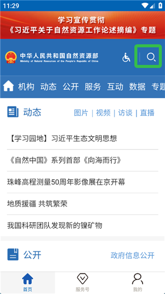 1、打开自然资源部App,点击右上角的搜索图标。