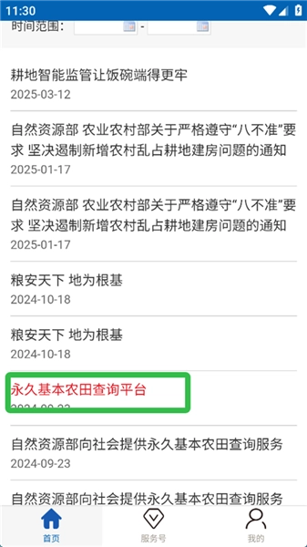 3、向下滑动并点击【永久基本农田查询平台】。
