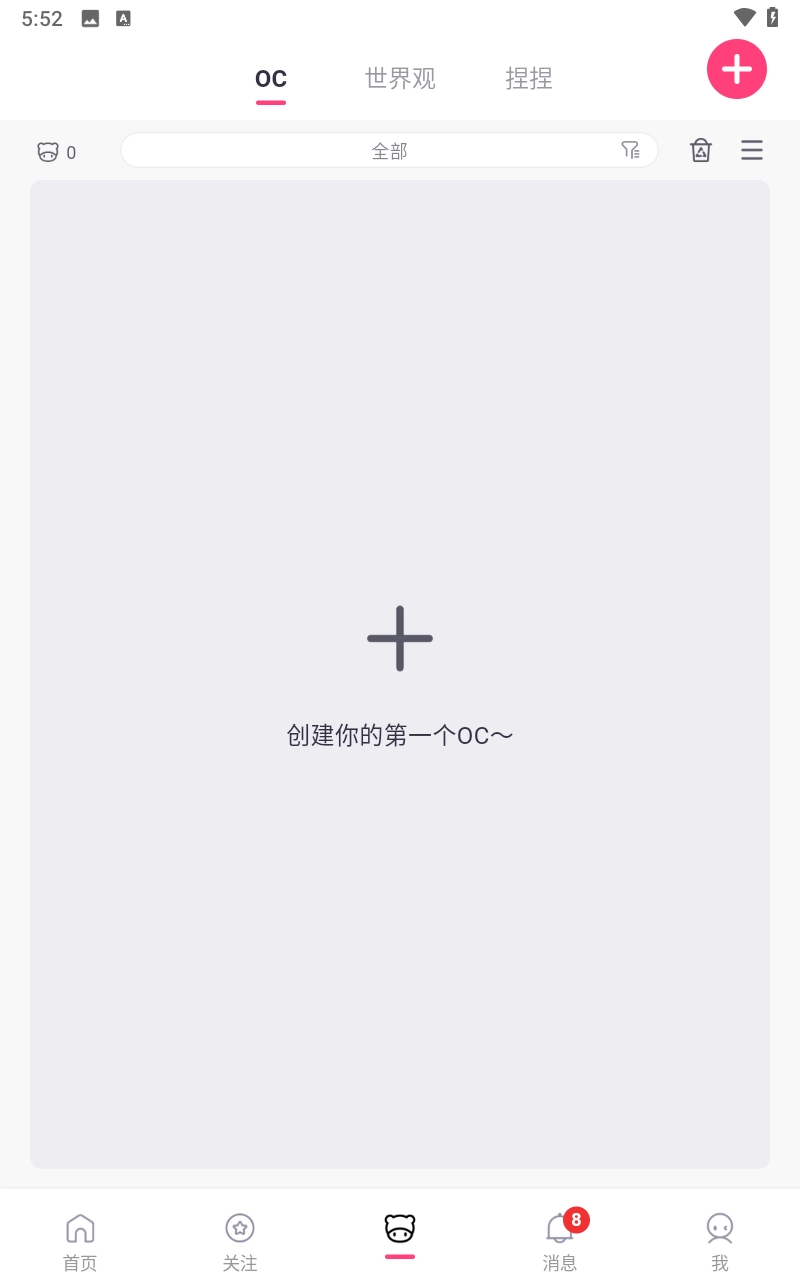 在我的OC界面中,能够查看本人创建的OC及世界观。