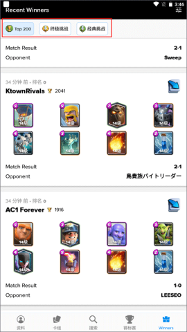 4、查看您和其他玩家的近期战斗历史,尝试他们的卡组组合!