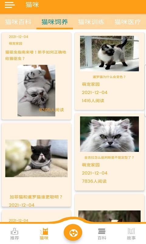 专门设有“猫咪百科”,从猫咪的日常护理到医疗急救,再到行为训练,内容专业详尽。