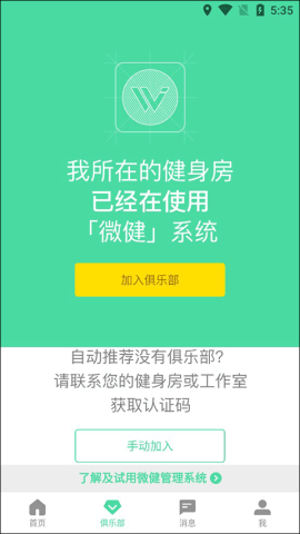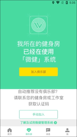 1、打开微健,点击底部的“俱乐部”,进入加入俱乐部界面。