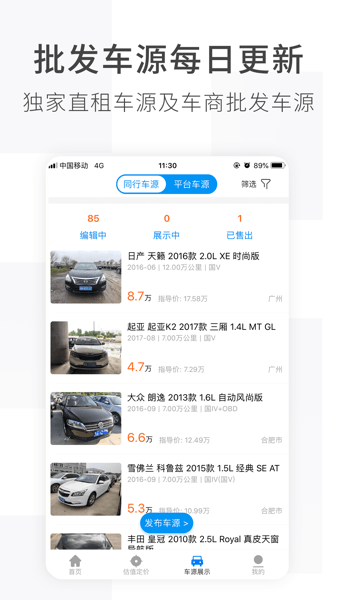 2、同行车源:支持车商免费展示数据,拓宽销售渠道,减少库存压力,促进交易。