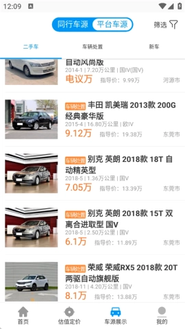 3、双重估价体系,车源专栏提供同行车源与平台车源两种估价方式,参考更全面;