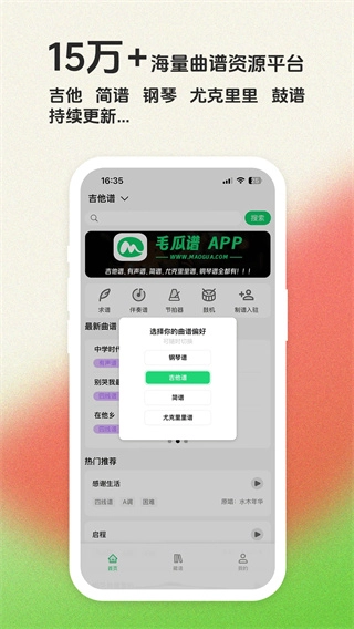 毛瓜谱拥有丰富的曲谱资源,涵盖了各种流行歌曲、经典曲目以及原创作品,可以根据自己的喜好和水平选择合适的曲目进行学习,感兴趣的用户可以软件体验一下。