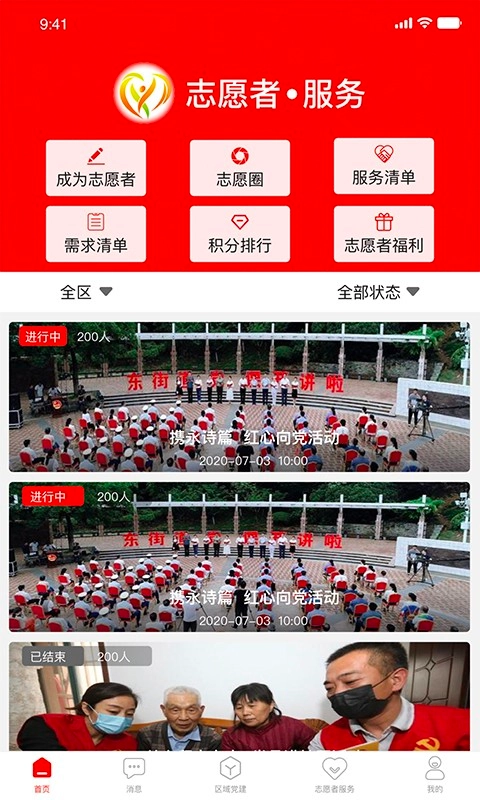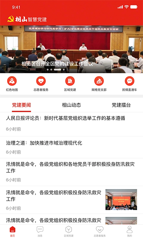 相山先锋行面向相山区各级党支部,支持组织生活学习、会议开展、签到、报名及会议记录等工作;也为志愿者活动提供报名、参与、积分获取与福利兑换服务;同时还能实现民情问题的提交、处理与转发。