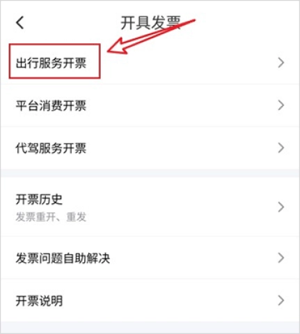 3、随后选取“出行服务开票”这一选项,既方便又快捷。