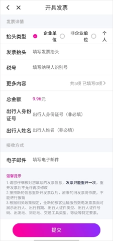 5、最后填好所需发票信息,点击“提交”,完成发票申请!