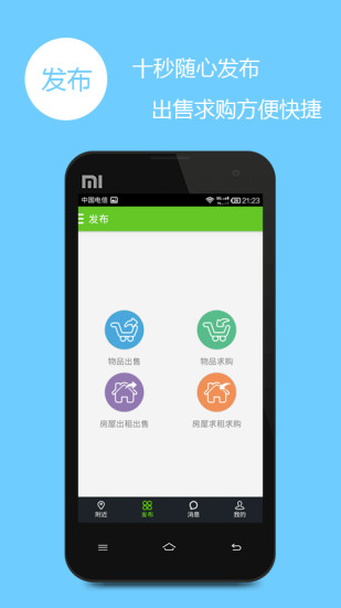 4、二手交易:准确定位你的地理信息,汇集附近闲置、转让等二手货交易信息,10秒随心发布你的出售或收购。