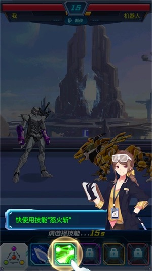 6、在战斗中选择合适技能释放,即可开启机甲战斗,对抗敌人完成战斗目标。