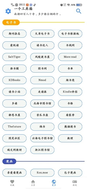 2、此外,还有漫画、电子书等各类资源,只需一键点击就能直接进入。