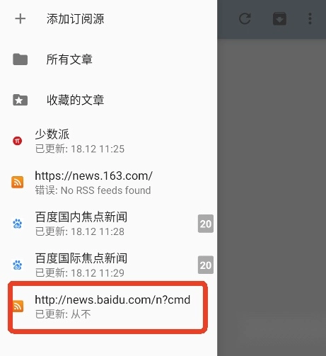 1. 轻点右上角的三条杠图标,接着在弹出选项中选取添加订阅源。