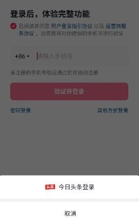 5. 你也可以点击“其他方式登录”,当前其他方式仅支持使用今日头条账号进行登录。