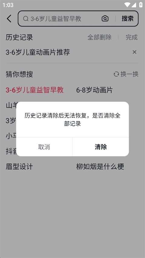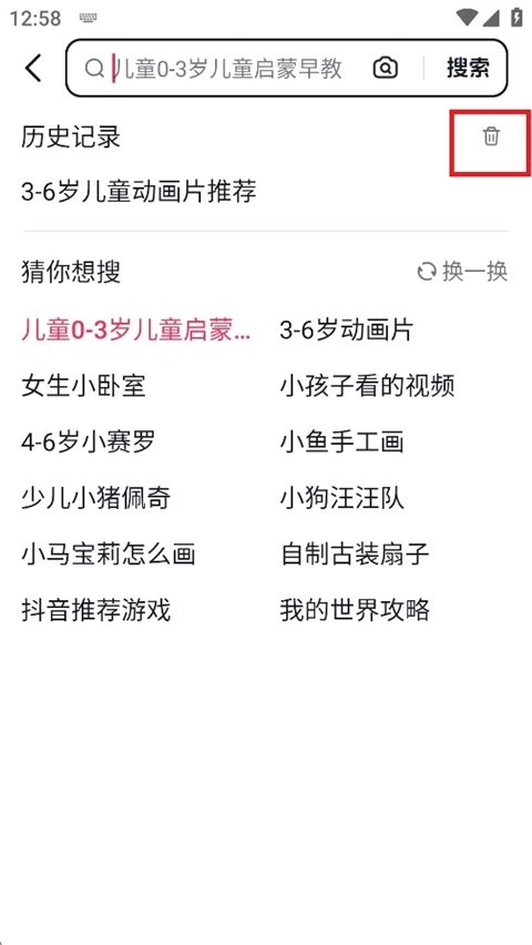 4. 在搜索界面,可单击搜索框下方的删除按钮,以此删除搜索历史记录。