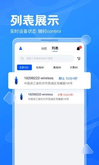 用户可以点击实时查询模式来查看各种不同类型的汽车数据,包括汽车定位以及具体的移动路径等等,使用起来更加方便。