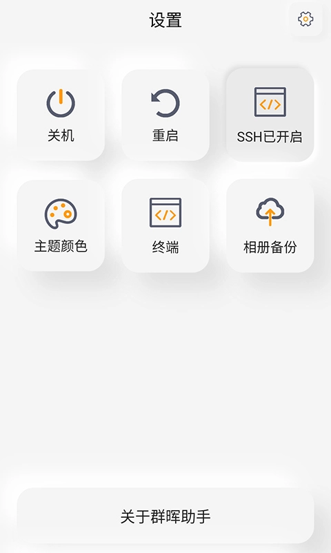 【设置】操作群晖关机、重启、开启/关闭SSH、设置主题颜色(亮色/暗色/跟随系统)、终端、相册备份(未完成)