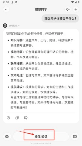 4. 登录后进入主页,按住说话或输入想了解的问题,软件将快速为解答。