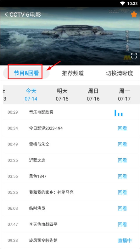 1. 开启秒看电视应用,在众多频道中挑选一个想要回看的频道。