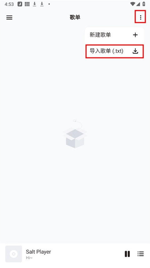 3、轻点右上角的三个小点,接着点击“导入歌单”选项。