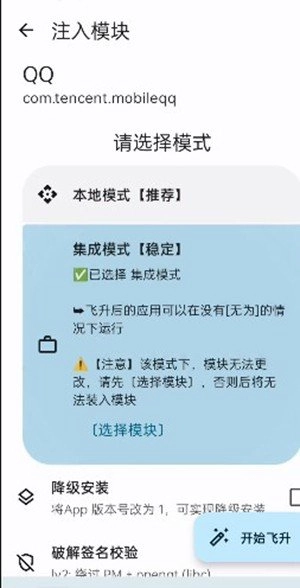 8、选择本地模式和降级安装打开;