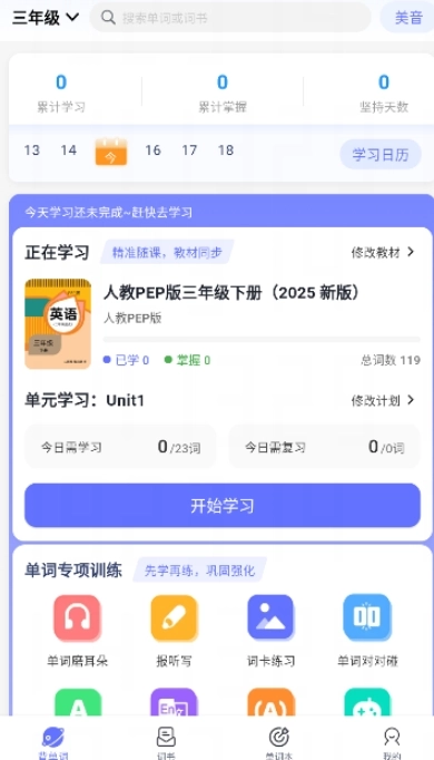 2、完成后进入到背单词页面中可以看到许多的学习功能
