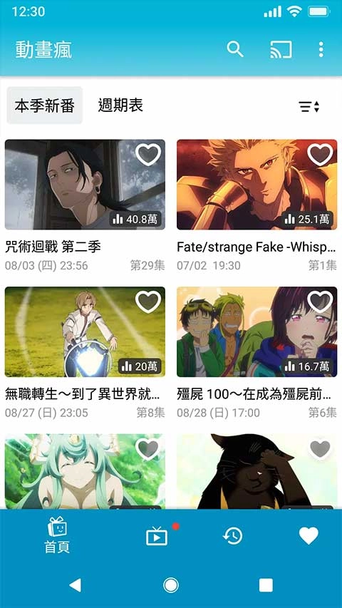 2. 每季度均会推出新动漫,为用户呈现新季度的新番及PV。
