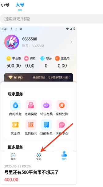 1. 用户需进入首页,寻找到“交易”。