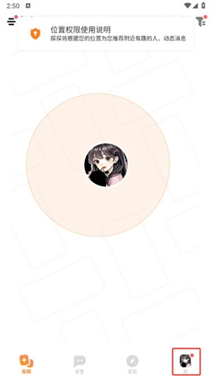 1. 第一步,打开探探软件,待进入首页后,点击右下角的【我】。
