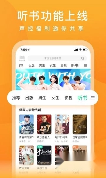 爱奇艺小说,由北京爱奇艺精心打造,汇聚海量小说资源。新人注册登录,就能享受天天送会员的福利,全场书籍统统免费阅读。此外,还全新增添了听书功能,用户可自行挑选阅读音色,堪称声控一族的福音。别犹豫啦,快来体验吧!