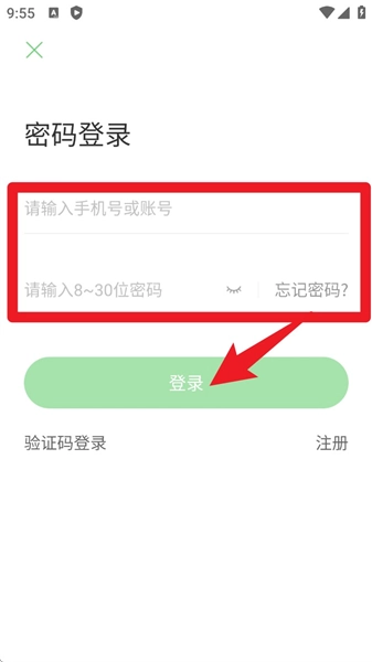 2. 注册成功后回到首页,可选择“密码登录”或者“验证码登录”的方式,接着输入账号信息,最后点击“登录”按钮。