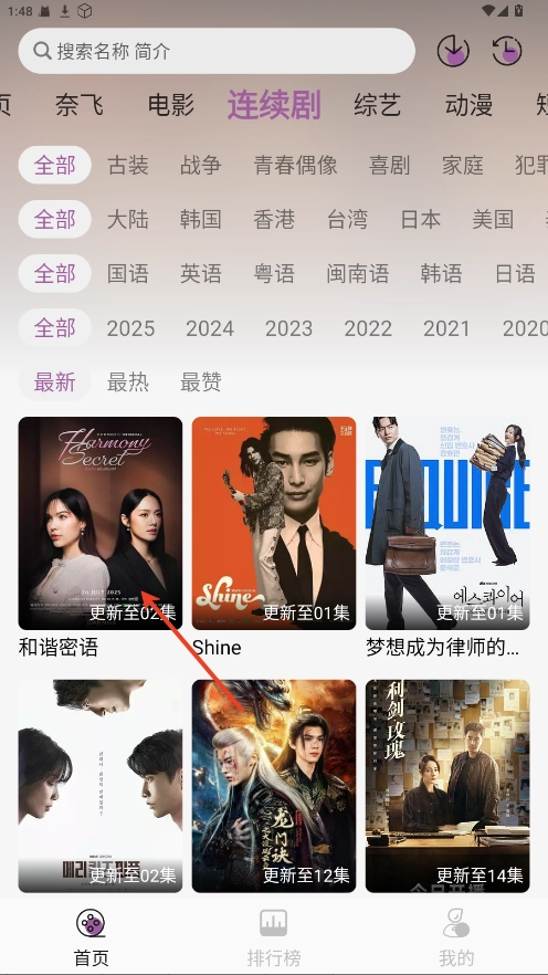3. 挑选集数,点击查看列表,便能查看已有的影片内容。