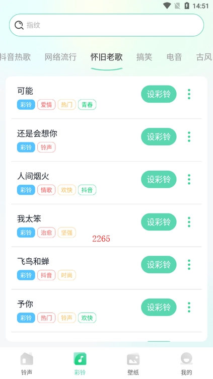 铃声精细分类,涵盖经典、原创、翻唱、恶搞、影视、动漫,任你挑选心仪的那一款。