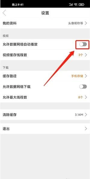 请前往设置界面,找到【允许数据网络自动播放】选项,点击其右侧的按钮,将该功能关闭。