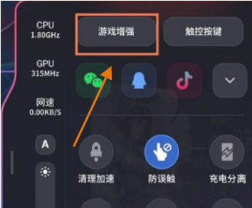 2、横屏后向左滑动,呼出控制中心,点击游戏增强。