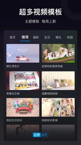 汇声绘影专业版,作为一款便捷实用的手机端专业视频剪辑与照片编辑管理平台,拥有海量视频模板。用户仅需导入图片,就能轻松导出高质量作品。无论是婚礼开场视频、示爱告白这类温馨场景,还是企业宣传、产品推广等商务场景,它都能帮您轻松解决。