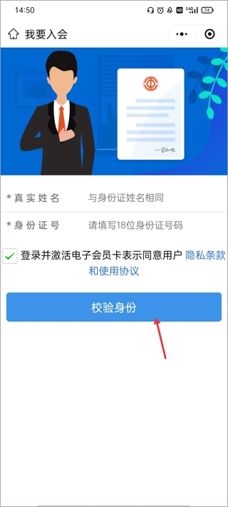 2、此时页面跳转至微信小程序内,点击最上方的“我要入会”选项。